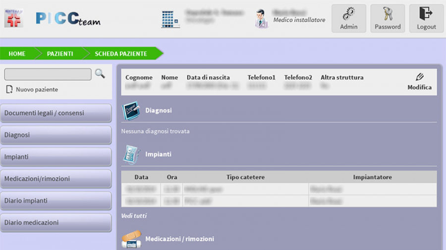 Gestionale realizzato per coordinare i team di impiantatori di accessi vascolari.